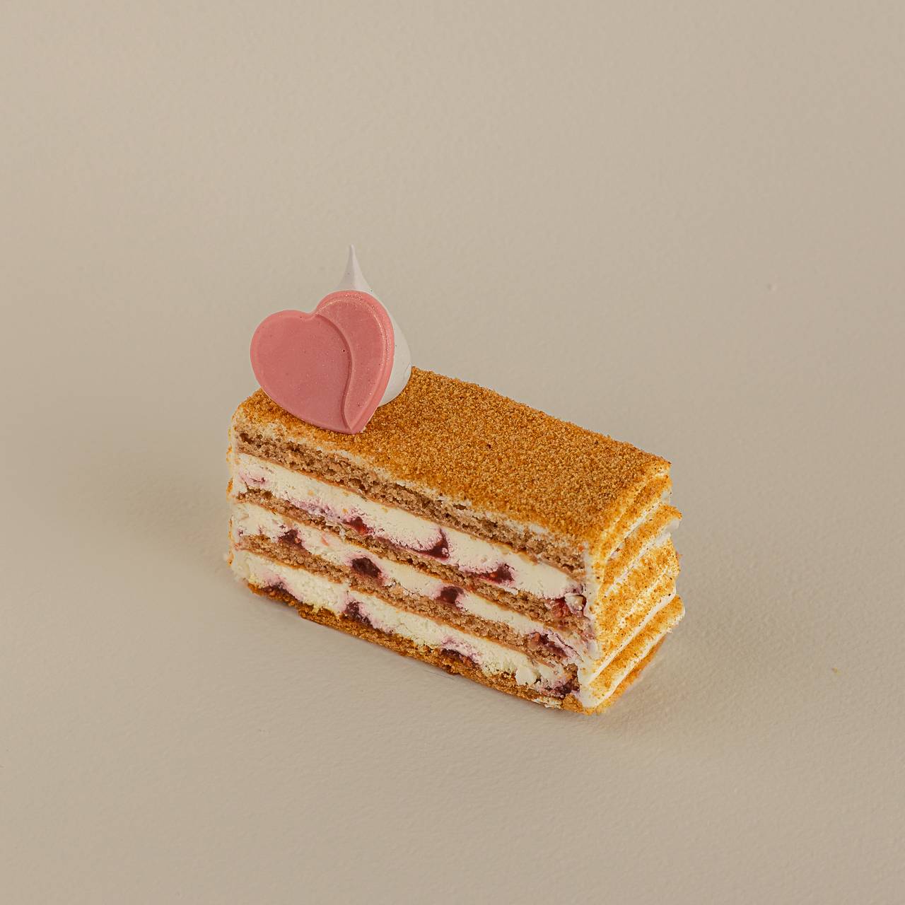 Cremă de smântână, Coulis de zmeură, Foi cu miere de albine